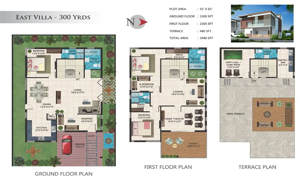 The fundamental components of architectural layouts include 3D floor plans, 3D home designs, real estate floor plans, and rendering services. To ensure that no detail is overlooked, both vertical and horizontal spaces are precisely projected in 3D design for 360-degree development.